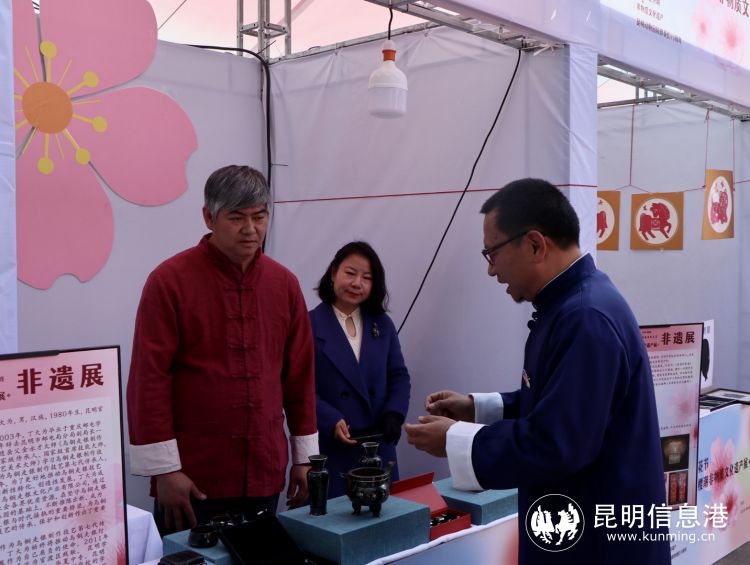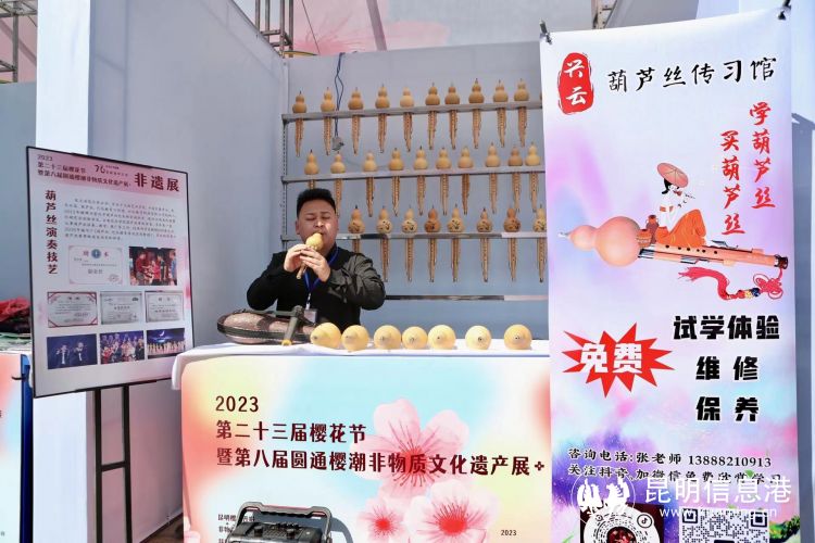 在昆明動物園中心區(qū)及櫻花區(qū)八角亭“非遺展示館”內,設置有糖畫、面塑、非遺唐菓子、剪紙展示區(qū),非遺傳承人們妙手生花,幾下便勾勒出栩栩如生的糖畫、面人、側影剪紙,制作精致的非遺唐菓子引得來往游人駐足觀看。葫蘆絲展區(qū)也頗受游客關注,宛轉悠揚的葫蘆絲聲聲入耳,以聲傳遞云南傳統(tǒng)樂器之美。而滇派刺繡、錦粹服飾、逸品生香、掐絲琺瑯彩畫、烏銅走銀等精工巧作,也用精巧構思、精湛手藝展現(xiàn)了非遺傳承人們的匠人匠心。市民游客可于3月1日至4月9日前往展區(qū)觀展。