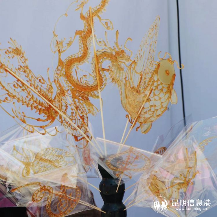 糖畫是一種傳統(tǒng)民間手工藝,以糖為材料來進行造型,民間俗稱“倒糖人兒”。糖畫,分為平面糖畫與立體“倒糖餅兒”或“糖燈影兒”糖畫兩種。它是地道的民間畫種,頗具特色的街市藝術。由于糖料的流動性,即使相同的形象,亦不會出現(xiàn)雷同的造型。櫻花節(jié)上,昆明市盤龍區(qū)非物質文化遺產代表性傳承人陳章洪將現(xiàn)場制作糖畫,傳承非遺糖畫技藝。
