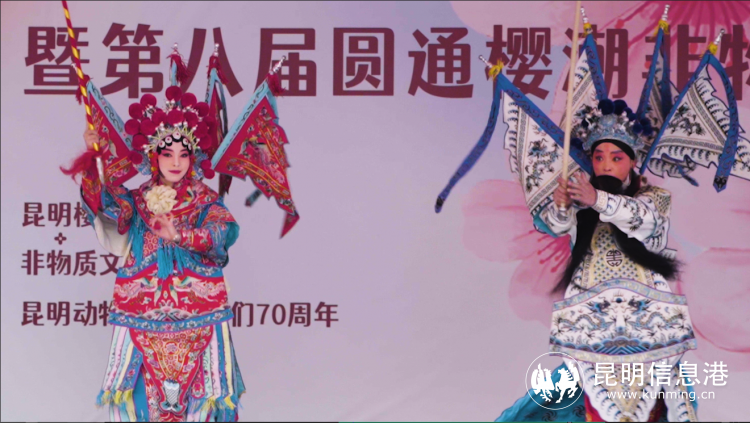 除代表性非物質文化遺產展示系列活動外,3月4、5、8、11、12日14:00還將在昆明動物園中心區(qū)舞臺,舉行云南民族民間舞樂、戲劇展演。演出劇目為滇劇優(yōu)秀傳統(tǒng)折子戲《游御園》《三岔口》《法場斬妖》《待嫁》片段,及融合文學,音樂,舞蹈,美術等諸多表演元素的戲劇《古滇新韻》。