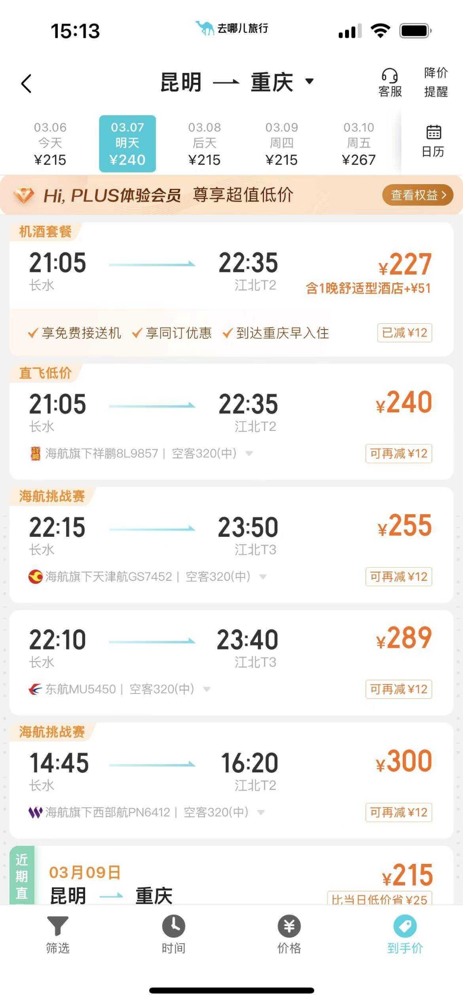 近期,打“飛的”到昆明旅游性價(jià)比同樣很高。在去哪兒平臺(tái)上,3月24日前,重慶、成都、南京、廈門、西安等城市到昆明的機(jī)票價(jià)格在300元左右,其中3月8日重慶、成都飛昆明的票價(jià)分布低至198元和237元,3月9日南京飛昆明的票價(jià)低至250元,3月21日廈門飛昆明的票價(jià)低至278元。