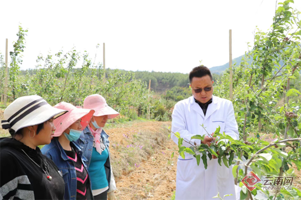 2017年,在寧蒗縣委、縣政府及相關(guān)部門的支持下,魯權(quán)聯(lián)合6名同學(xué)和村里24名黨員成立了中共藥草坪“2700”蘋果基地支部委員會(huì),采取“公司+黨支部+科研院校+協(xié)會(huì)+合作社+果農(nóng)”的模式,在新營盤毛菇坪村建設(shè)了1238畝臺(tái)地矮化“2700”蜂蜜蘋果種植示范基地,同時(shí)也建設(shè)了“四片區(qū)一中心”的現(xiàn)代化農(nóng)業(yè)綜合基地。