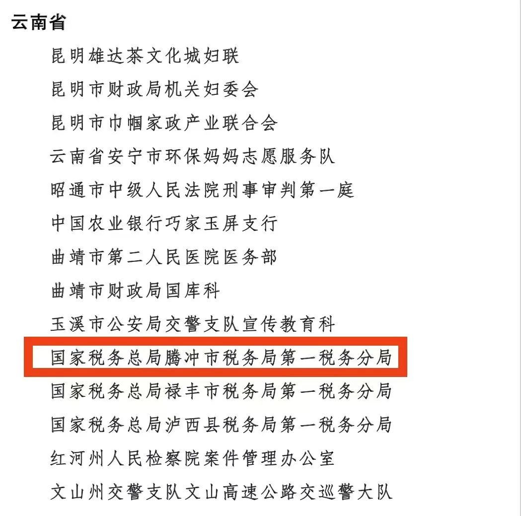 日前,國家稅務(wù)總局騰沖市稅務(wù)局第一稅務(wù)分局被全國婦聯(lián)評為“全國巾幗文明崗”,是保山市唯一獲表彰的單位。