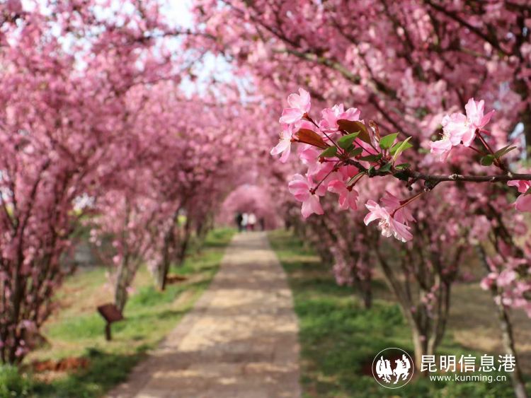乃古石林是石林世界自然遺產(chǎn)地的核心保護區(qū),為國家4A級旅游景區(qū),具有得天獨厚的喀斯特地貌和優(yōu)美的自然環(huán)境。每年3月,景區(qū)內(nèi)的油菜花、垂絲海棠、櫻花競相綻放,綿延千米的拱形垂絲海棠形成粉色的鮮花隧道,被人們稱為“幸福大道”,穿過隧道,映入眼簾的便是千畝油菜花形成的金色花海。據(jù)悉,今年的油菜花預(yù)計于3月中旬盛開,花期可持續(xù)至4月初。