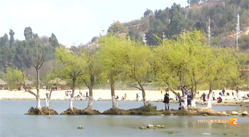 記者:“現(xiàn)在正值陽(yáng)春三月,這里兩千畝的油菜花已經(jīng)開(kāi)放了,在我的身后是滇池,右手邊就是網(wǎng)紅打卡點(diǎn)綠皮火車(chē),現(xiàn)在我整個(gè)人是置身于一片花海當(dāng)中,可以說(shuō)是目之所及皆是美景,隨手一拍就能成大片?!?/p>