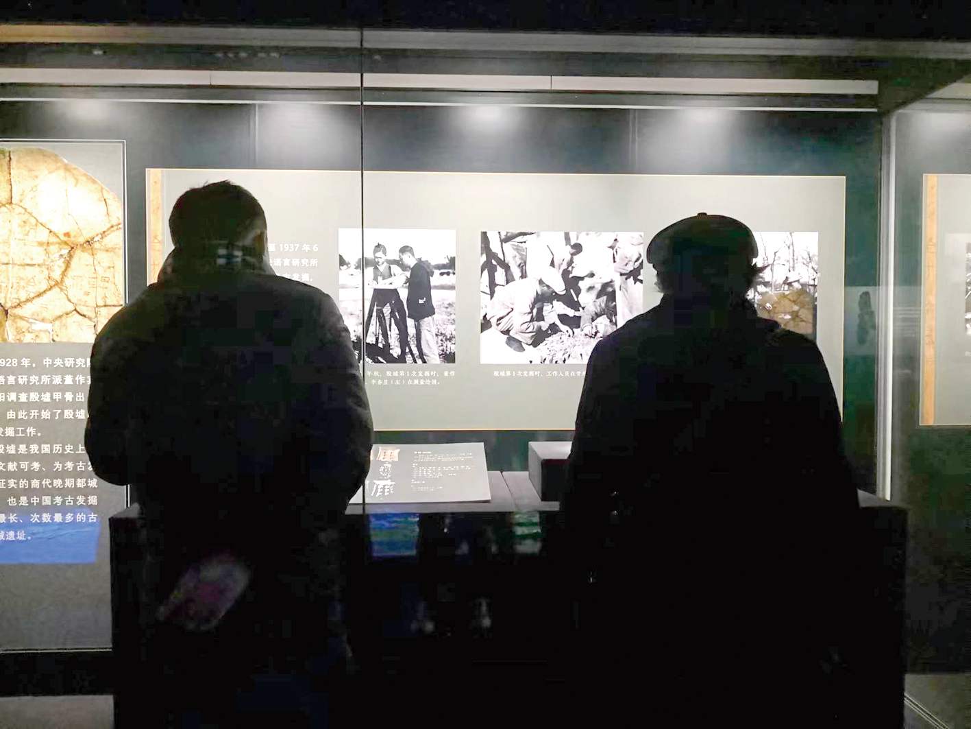 “恭喜大王,今日田獵獲豕一!”“殷墟甲骨”專題展廳中,站在“占卜臺(tái)”前,觀眾選擇相應(yīng)的內(nèi)容點(diǎn)擊,面前的大屏幕上出現(xiàn)模擬龜甲被炙烤、開裂的動(dòng)畫,讓人仿佛穿越回商王朝,置身于隆重的占卜現(xiàn)場(chǎng)。