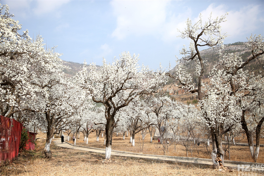 陽春三月天,會(huì)澤縣水城擴(kuò)紅生態(tài)園的百年梨樹在春風(fēng)吹拂下吐露新芽,一樹梨花如約綻放。