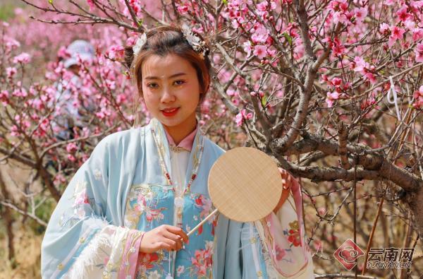 擺poss、拍照、分享喜悅,游客小桃身著漢服與小伙伴正在盡情感受“桃花朵朵開(kāi)”帶來(lái)的快樂(lè)?!斑@次是專(zhuān)程從昆明回來(lái),約著好朋友來(lái)拍照的,比預(yù)想中還要熱鬧?!毙√艺f(shuō)。