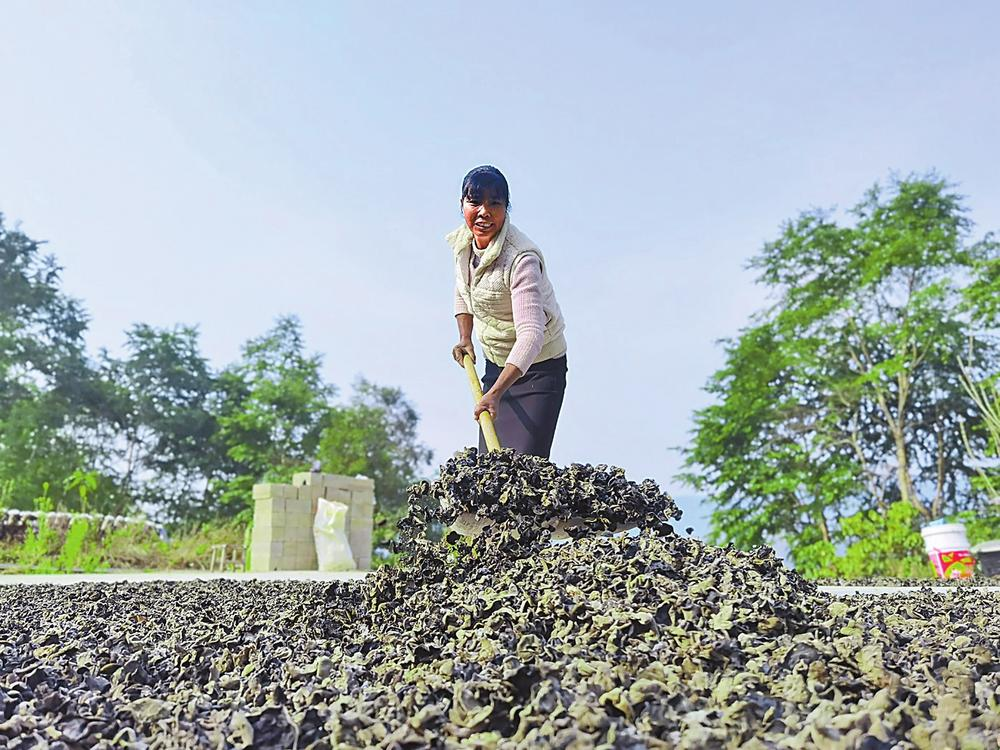 近年來,新寨村依托當(dāng)?shù)氐馁Y源、氣候、生態(tài)優(yōu)勢(shì),通過采取黨建引領(lǐng)、技術(shù)引進(jìn)等措施推進(jìn)木耳種植。居住在山腳、山腰的部分村民因地制宜,以“黑木耳+”的輪種方式,實(shí)現(xiàn)了季季有產(chǎn)出,季季有收入。