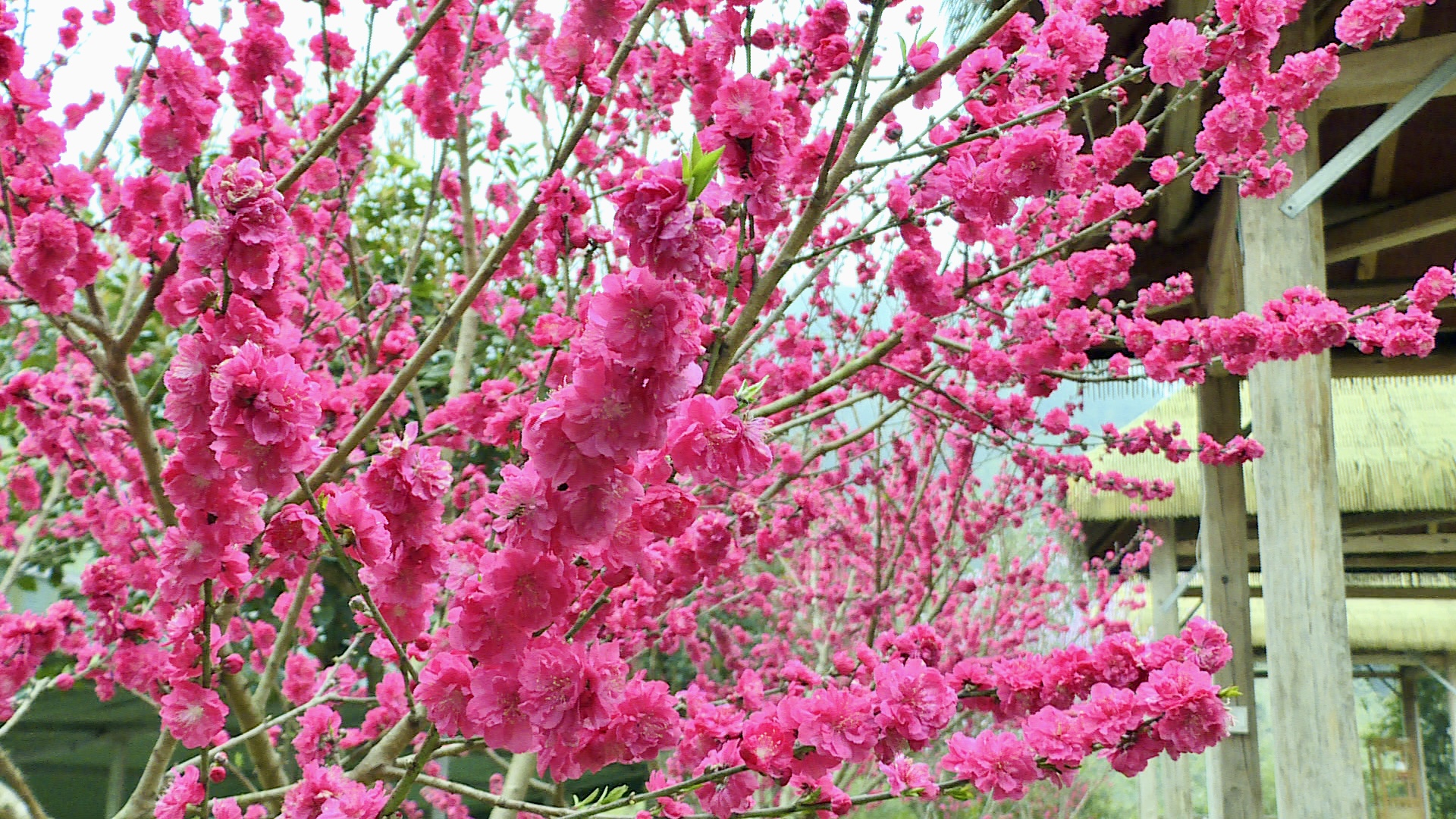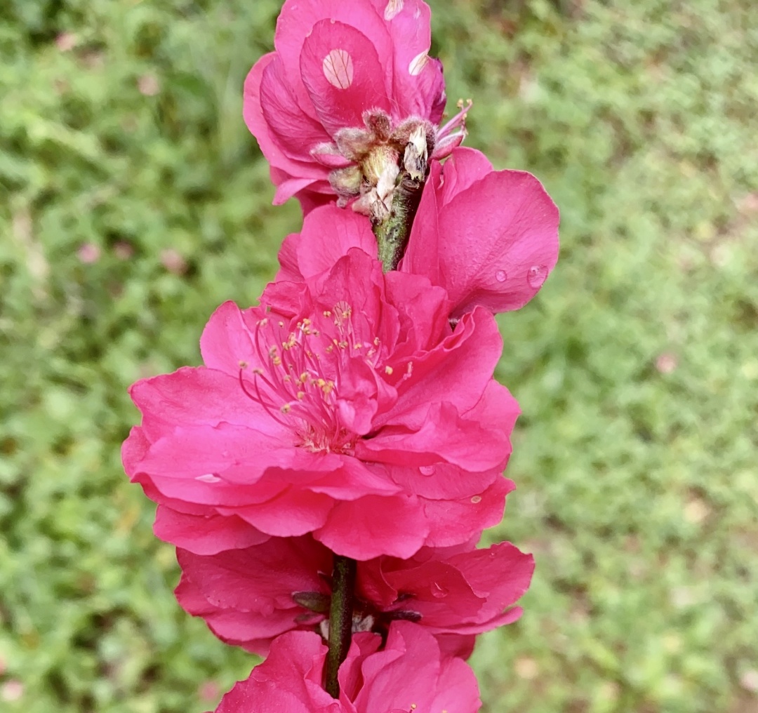 走進(jìn)大地湖畔,這里的桃花沒有白里透粉的清雅,卻有嬌艷似火的嫵媚。穿行于桃花樹下,一團(tuán)團(tuán)、一簇簇桃花掛滿枝頭,有裊娜地開著的,有羞澀地打著朵兒的,一陣微風(fēng)拂過,火紅的桃花迎風(fēng)搖曳、與春爭色,盡情地展示著優(yōu)美的舞姿,爛漫迷人,有些調(diào)皮的小花瓣還會趁機(jī)與路人玩起捉迷藏,跑到路人的頭發(fā)上小憩許久,不愿離開。