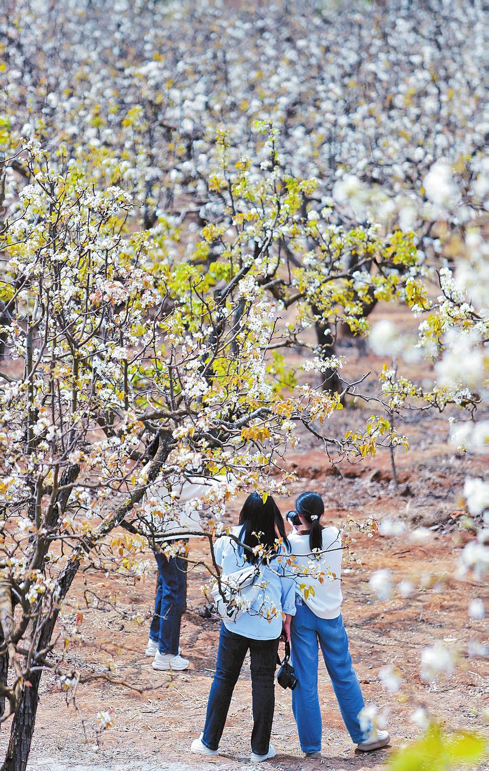 3月18日,2023年呈貢區(qū)網(wǎng)絡(luò)文化節(jié)系列活動暨中國·呈貢第十一屆萬溪梨花節(jié)啟幕,市民游客在萬溪梨鎮(zhèn)體驗“琴棋書畫詩酒花茶”八雅風情,感受梨花文化和農(nóng)文旅融合的魅力。(記者余紅 王毅 見習記者 李興文 攝)