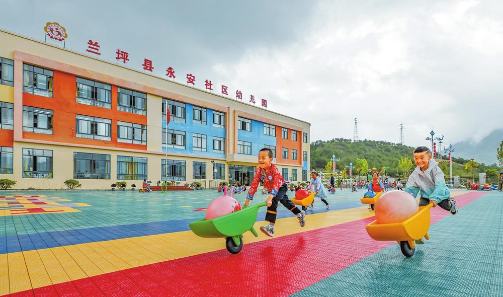 孩子們在幼兒園里做游戲。記者 李壽華 攝