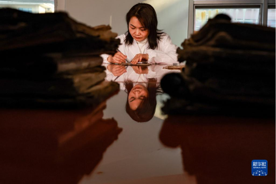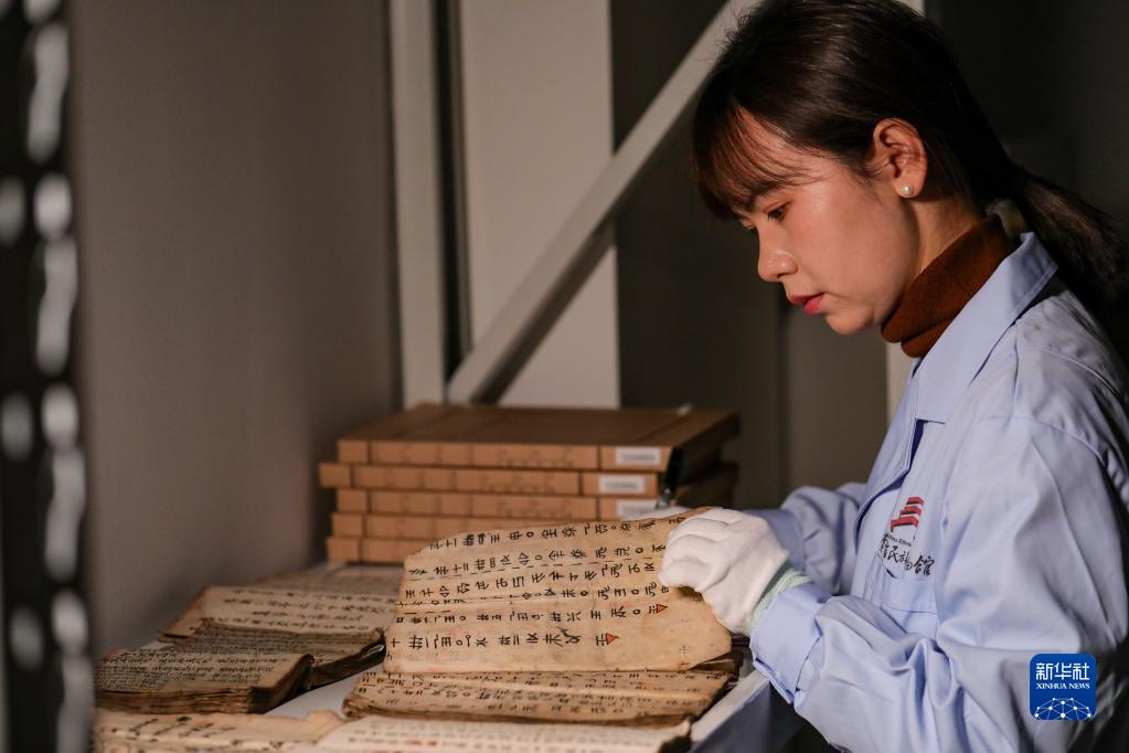 3月17日,貴州省民族博物館的工作人員在整理水書文獻(xiàn)。