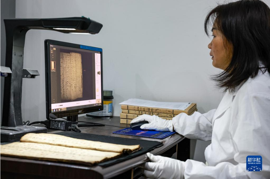 3月8日,荔波縣檔案史志館的工作人員在用掃描儀錄入水書文獻(xiàn)。