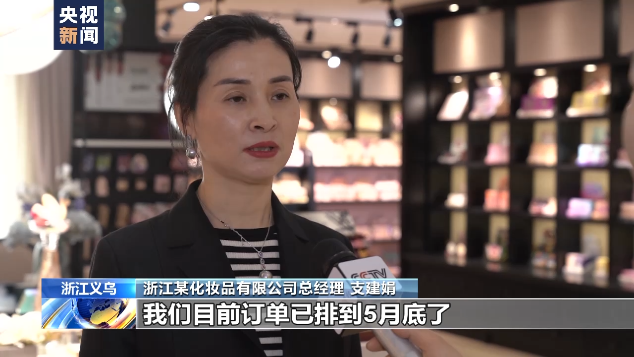 浙江某化妝品有限公司總經(jīng)理 支建娟:公司這邊的話(huà)投入很大的資金,包括建立一些很多設(shè)計(jì)團(tuán)隊(duì),在杭州,在上海,都有設(shè)計(jì)團(tuán)隊(duì),相對(duì)應(yīng)開(kāi)發(fā)一些適應(yīng)當(dāng)?shù)貒?guó)家的風(fēng)格。我們目前的出口還是比較樂(lè)觀的,目前訂單已排到5月底。