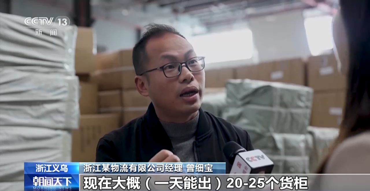 浙江某物流有限公司經(jīng)理 曾細(xì)寶:現(xiàn)在大概一天能出20-25個(gè)貨柜,一天出55個(gè)貨柜是最高峰期的時(shí)候,今年我們可能會(huì)突破這個(gè)數(shù)字。