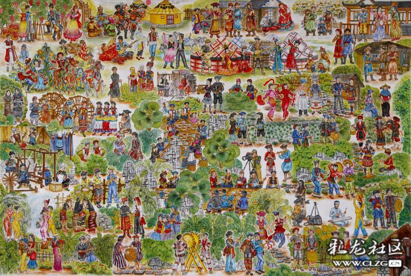 《農(nóng)民畫:華夏民族一家親》作者:金牛