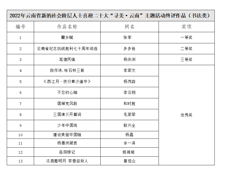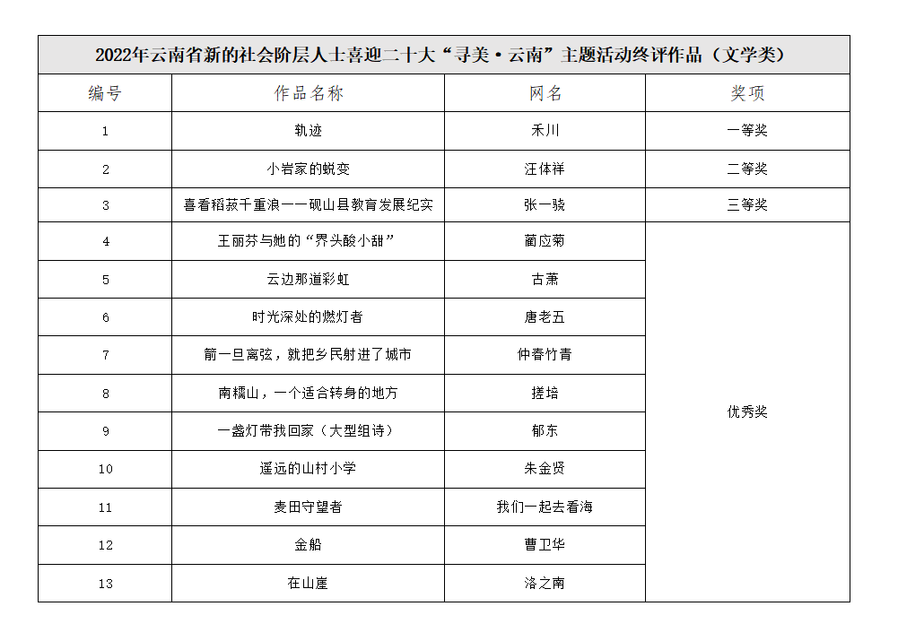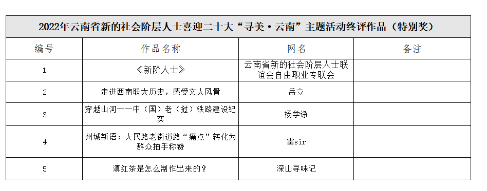 由云南省委統(tǒng)戰(zhàn)部、云南省委網(wǎng)信辦、昆明市委統(tǒng)戰(zhàn)部指導(dǎo),云南省新的社會(huì)階層人士聯(lián)誼會(huì)主辦,昆明信息港承辦的2022年云南省新的社會(huì)階層人士喜迎二十大“尋美·云南”主題活動(dòng),于2022年12月31日完成征集工作,全平臺(tái)共征集到投稿作品8273件(組),活動(dòng)全網(wǎng)閱讀量達(dá)2.36億次。