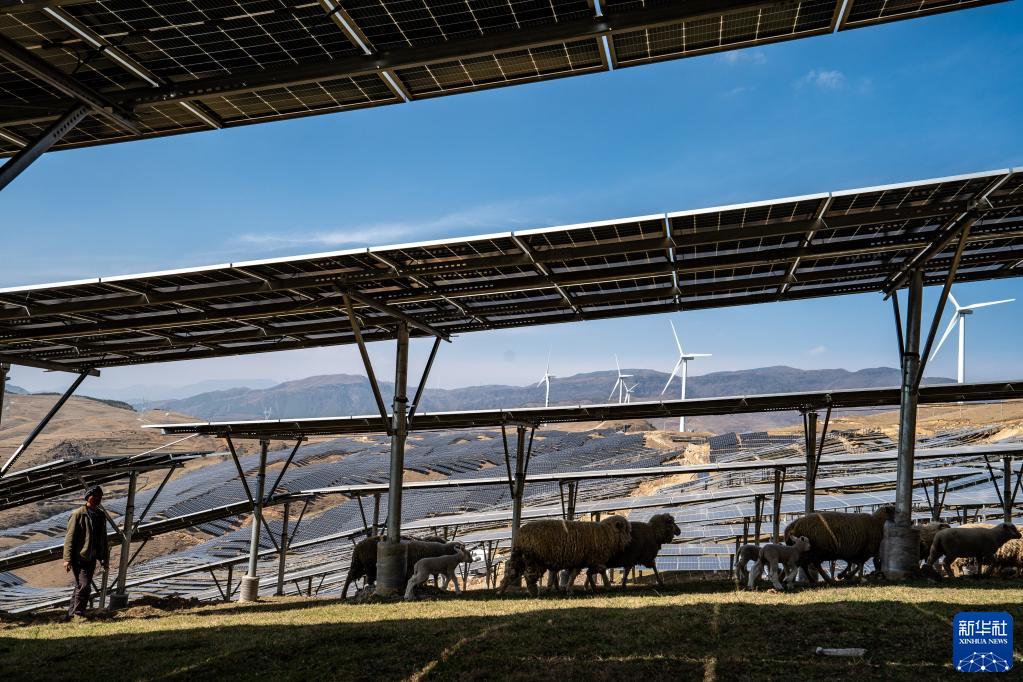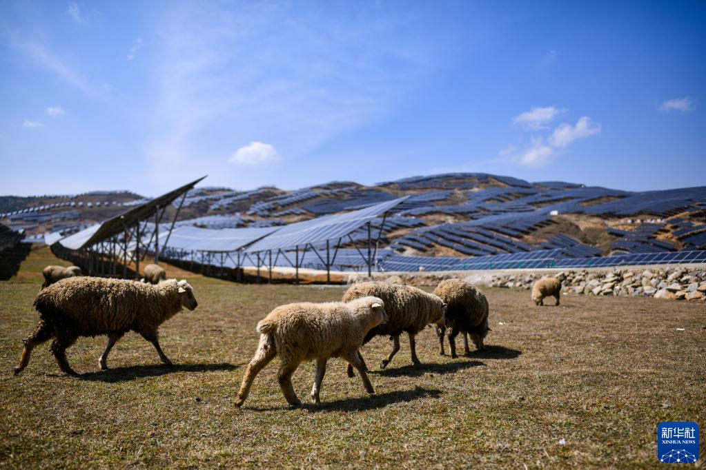 羊群在云南省巧家縣海堤光電站吃草(3月19日攝影)。