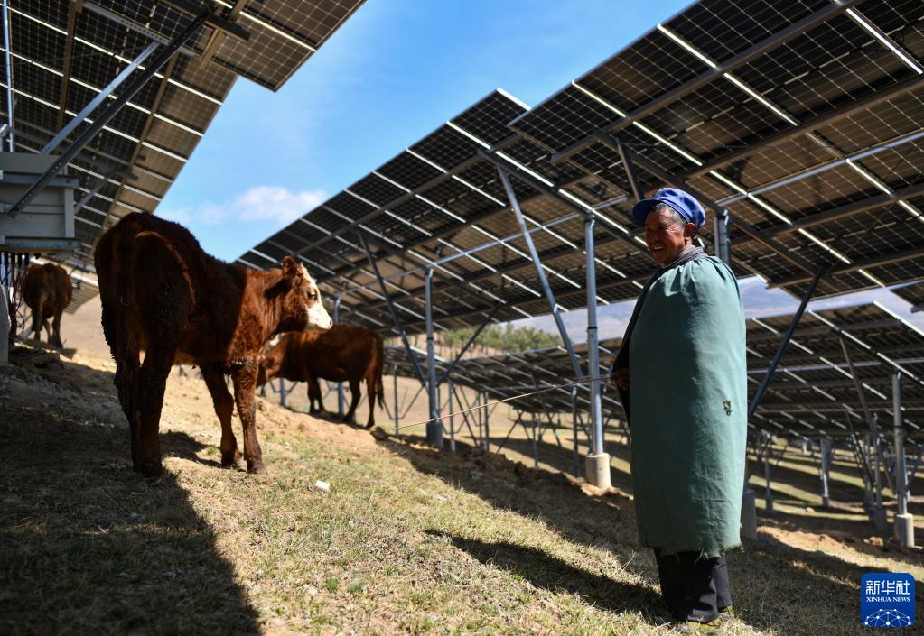 村民馬洪萬在云南省巧家縣海堤光電站放牛(3月19日攝影)。