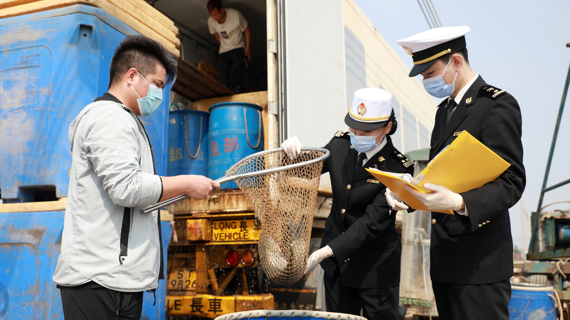 廣東中山:海關(guān)關(guān)員對供澳活魚開展裝運監(jiān)督