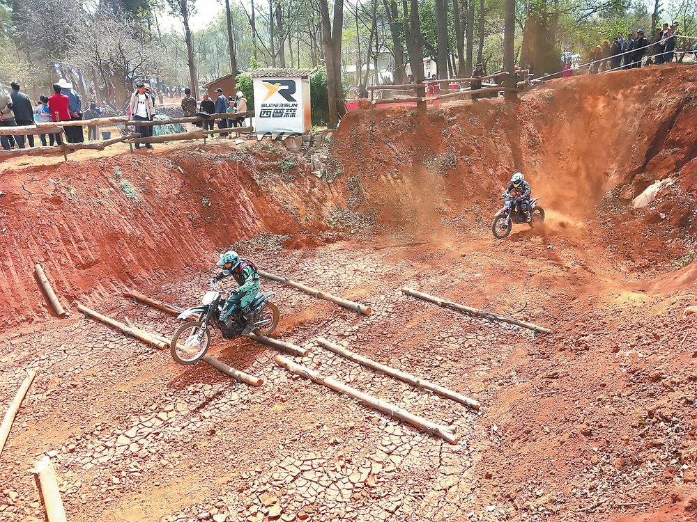 3月18日,在大理州洱源縣茈碧湖鄉(xiāng)村旅游節(jié)開幕之際,第二屆“全逸杯”越野摩托車賽在茈碧湖鄉(xiāng)村旅游節(jié)果勝三臺(tái)山會(huì)場(chǎng)拉開帷幕,吸引了來自全省的50多名摩托車戶外越野愛好者參賽。賽場(chǎng)上,車手們過彎、爬坡,不時(shí)展示高難度動(dòng)作,他們矯健的身姿、精湛的車技讓觀眾大飽眼福。(記者王利絢 通訊員段正孝 施新弟 盧奪坤)
