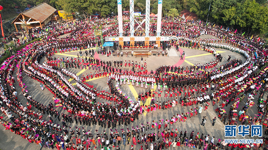 云南省德宏州盈江縣2023年目瑙縱歌盛會(huì)現(xiàn)場(chǎng)(2月11日攝)。新華網(wǎng)發(fā)(何海燕 攝)