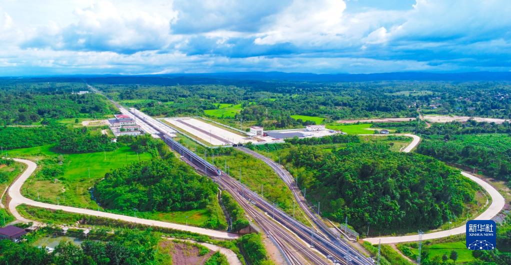 “瀾滄號(hào)”動(dòng)車(chē)組列車(chē)運(yùn)行在中老鐵路老撾段線路上(1月2日攝)。新華社發(fā)(楊永全 攝)