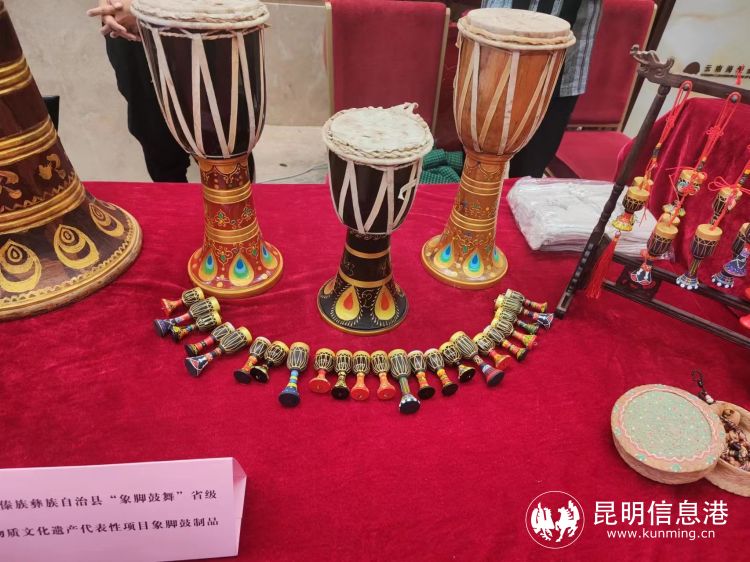 圖為現(xiàn)場(chǎng)展示的象腳鼓