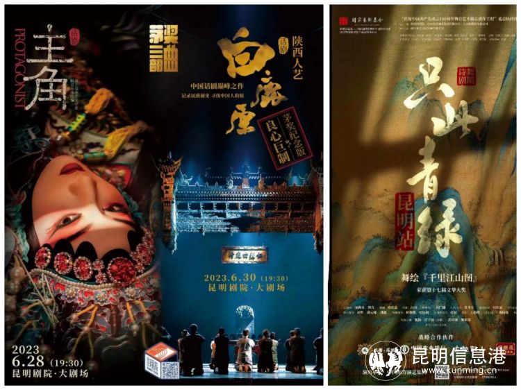 《主角》、《白鹿原》、《只此青綠》海報(bào)。昆明劇院供圖