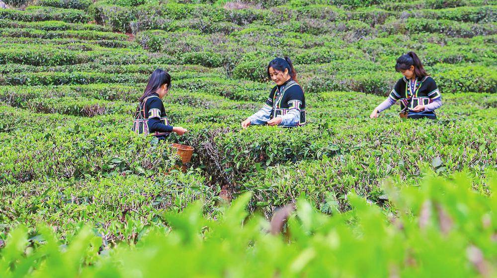 春暖大地,茶園飄香。進(jìn)入三月以來(lái),元江哈尼族彝族傣族自治縣那諾鄉(xiāng)豬街村種植的上千畝茶樹(shù)抽出新芽,陸續(xù)進(jìn)入了采摘期。茶農(nóng)段順愛(ài)和村里的姐妹身挎背簍,正穿梭在自家的茶園中,一捏一提,嫻熟地采摘新葉。