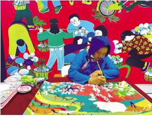 農(nóng)民畫(huà)非遺傳承人劉瓊麗現(xiàn)場(chǎng)作畫(huà)