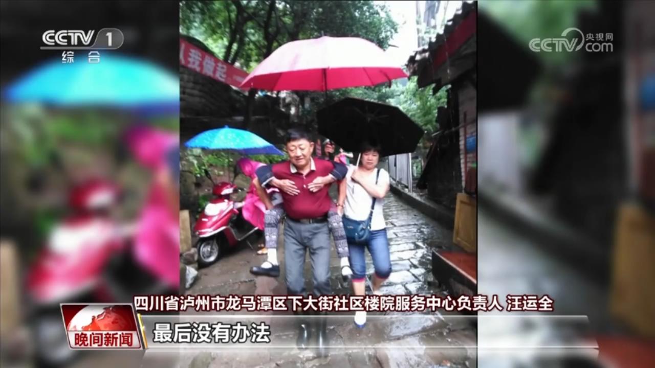 四川省瀘州市龍馬潭區(qū)下大街社區(qū)樓院服務(wù)中心負(fù)責(zé)人 汪運(yùn)全:2020年汛期,有天晚上突降暴雨,我們在轉(zhuǎn)移安置受災(zāi)群眾的時候,其中有個90多歲的老太婆,反復(fù)動員宣傳了多次,就是不走,最后沒有辦法,我就強(qiáng)行把她背著往安全地帶轉(zhuǎn)移。第二天,發(fā)現(xiàn)老太婆的房子住的房間垮了一大半。