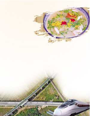“湯是過橋米線的靈魂,要選上好的排骨、筒子骨、五花肉、雞肉等放在大鍋中熬燉,一邊揮動(dòng)大勺攪拌,一邊用漏勺撈出白沫,需足足熬制5個(gè)小時(shí)?!?國家級非物質(zhì)文化遺產(chǎn)蒙自過橋米線制作技藝傳承人王麗珠介紹道。在開幕式現(xiàn)場,多家過橋米線店在向游客售賣自己的獨(dú)家過橋米線,蒙自王記菊花過橋米線也在其中。生鵪鶉蛋、瘦肉片、生魚片、香酥、菊花等食材被整齊地?cái)[放在橋形配菜架上,旁邊的高溫鍋爐飄來濃郁的高湯香味,游客們迫不及待地參與品嘗。
