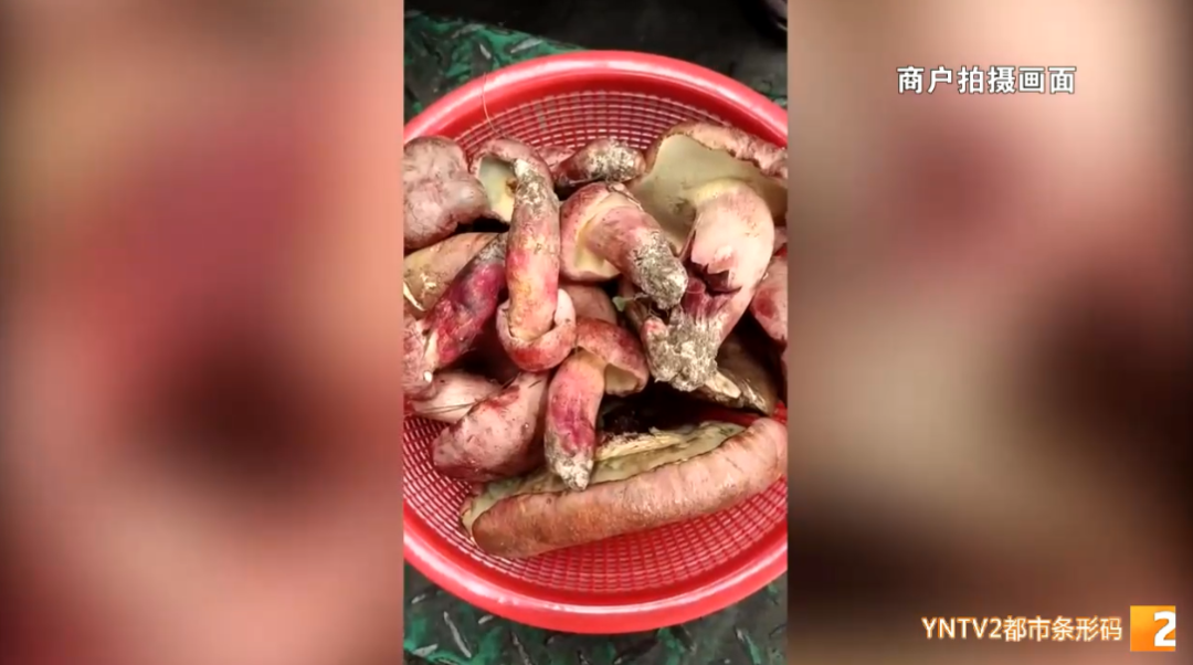 云南木水花野生菌交易中心市場部主管翟占士介紹,今年的頭水菌上市時間跟往年差不多,但數(shù)量相對較少?!巴暌彩侨碌拙统鼍恿?,今年因為天氣比較干,沒有雨水,出的菌子要少一點。往年這個時候,雞樅、紅蔥(牛肝菌)、黑牛肝也會有一點?!钡哉际空f。