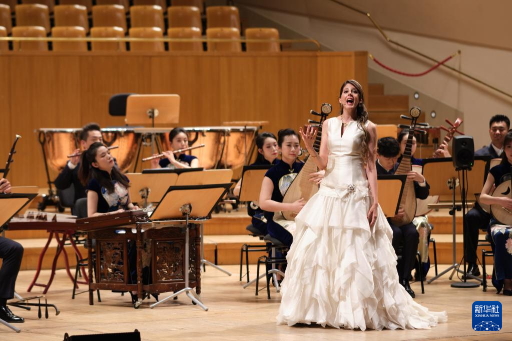 3月27日,中國藝術家張馨月在開幕音樂會上演唱《貴妃醉酒》。新華社記者孟鼎博/攝