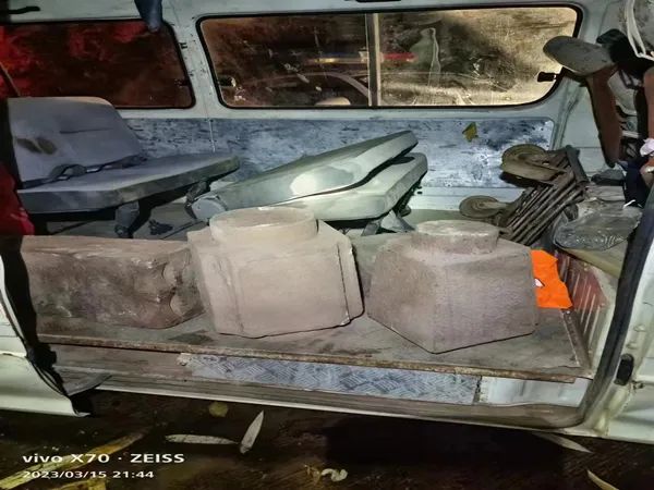 3月15日晚,在九龍街道水塘村委會石頭村村民的協(xié)助下,兩名潛入村子盜竊柱腳石等物品的違法犯罪嫌疑人被九龍派出所抓獲,查獲被盜柱腳石、磨盤、石條若干。