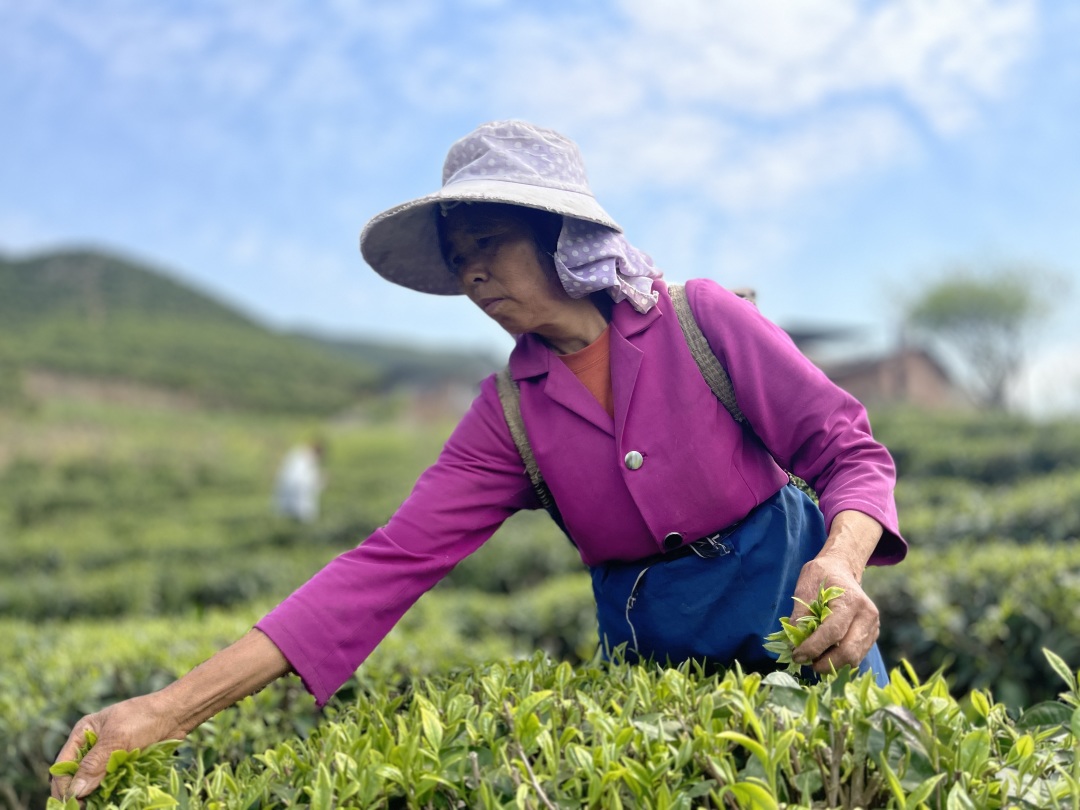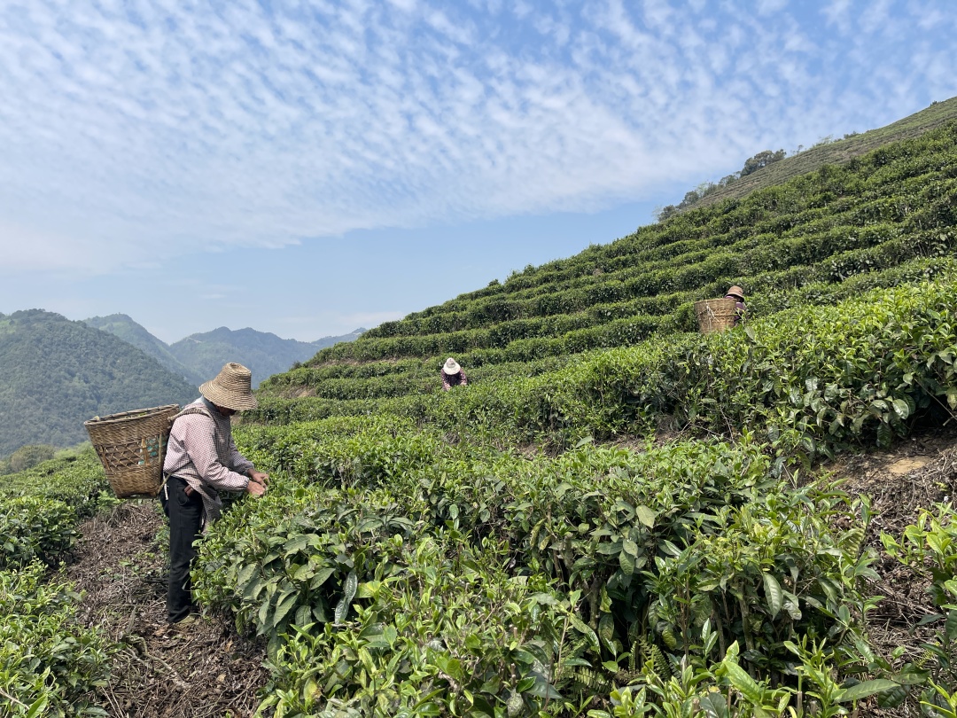 青龍山茶葉專業(yè)合作社負(fù)責(zé)人謝學(xué)華告訴記者,對于茶農(nóng)來說,初春是含金量最高的季節(jié),春分前后正是茶葉采摘的好時節(jié)。合作社結(jié)合實際,開出每天的采茶工錢是100元,吸引了許多村民前來“就業(yè)”,盤活了本地閑置勞動力,全力保障春茶提質(zhì)增量,促進(jìn)村民增收?!白詮倪@里種植茶葉后,我們每年都來采茶葉,一天收入100元錢左右,在家門口就有工作,也不用出遠(yuǎn)門去打工?!闭诓鑿S采摘的茶農(nóng)李發(fā)仙說道。