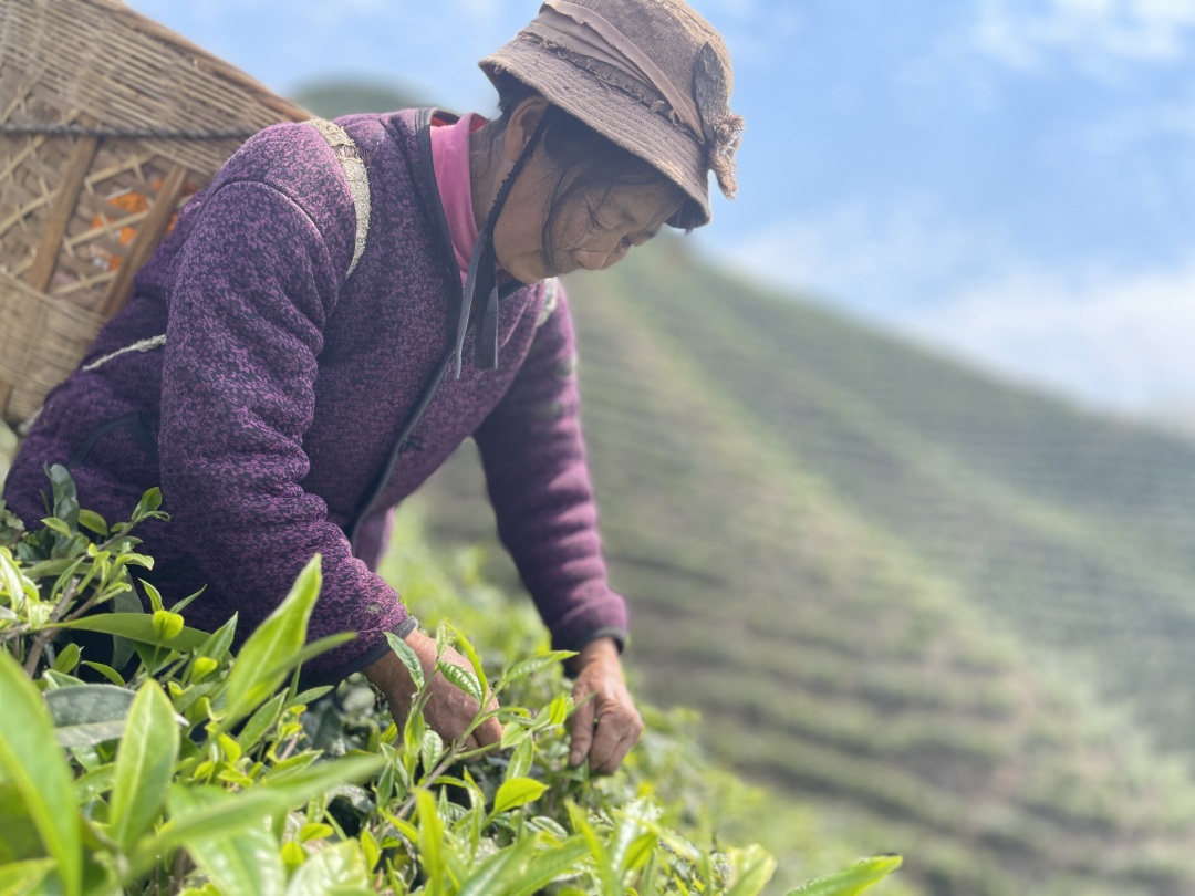 茶農(nóng) 游志玉:我們老了出不去打工,就在這里跟謝老板做工,一年有一萬元左右的收入。