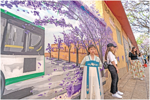 第四屆藍(lán)花楹文化藝術(shù)節(jié)在教場(chǎng)中路舉辦,吸引眾多市民參與 新華社記者 陳欣波 攝