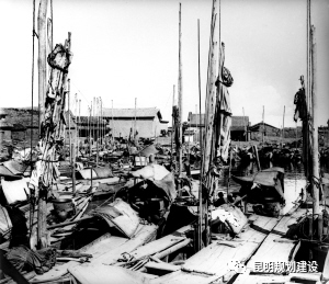 直到1924年,昆明“船民住戶”仍有465戶(1921年版《昆明市志》)。這些漁民“一家老小住在船上。漁船一般比運(yùn)輸船小很多,船中間有一個(gè)微型的用竹棚支撐起來(lái)的船艙,兩邊完全敞開(kāi),這里同時(shí)可以是廚房、飯廳和會(huì)客廳以及家庭全體成員的臥房。由于生活空間非常狹小,船艙里一切收拾得井井有條,年代久遠(yuǎn)的艙板經(jīng)過(guò)無(wú)數(shù)次的搽洗裸露出美麗的木紋”。天氣好時(shí),“所有船夫甚至一家老老少少全部出動(dòng)……船夫們使用長(zhǎng)長(zhǎng)的竹竿,在船邊狹窄的過(guò)道來(lái)來(lái)回回地忙碌著。他們到船頭將竹竿插進(jìn)淤泥般的河道里,然后使出最大的力氣,彎腰呈45度,費(fèi)力地走到船尾。然后抽出竹竿,走到前面再反復(fù)這個(gè)過(guò)程。在這期間,母親操縱著巨大的木槳,女兒把握著木舵控制著平衡和方向”(戈叔亞《戰(zhàn)時(shí)老昆明》)。