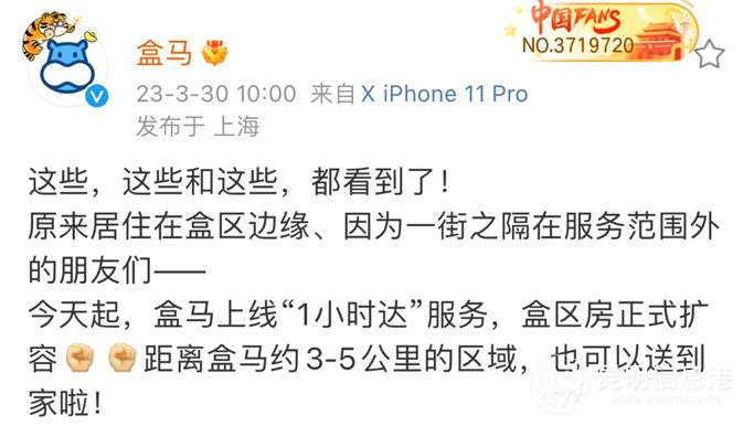 官方信息顯示,盒馬上線“1小時達(dá)”服務(wù)