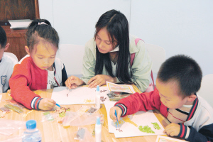 小朋友學習制作五谷畫。云南文學藝術館供圖