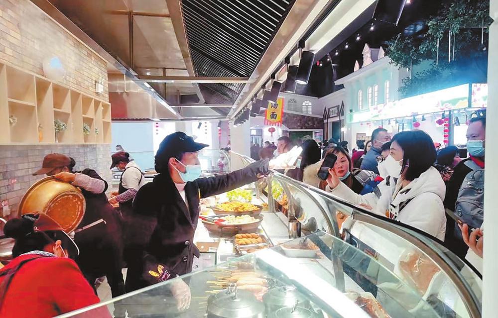 駛?cè)朐颇辖煌都瘓F新楚大高速公路牟定服務(wù)區(qū),一個集彝族特色、文旅風格、網(wǎng)紅潮玩、時尚餐飲、商業(yè)購物為一體的創(chuàng)新型服務(wù)區(qū)展現(xiàn)在眼前。結(jié)合文旅功能和楚雄民俗商貿(mào)特色,服務(wù)區(qū)打造出了火把廣場、童享樂園、臨空棧道、房車露營、果樹園林、商業(yè)購物中心等多個特色區(qū)域。商業(yè)購物中心還特設(shè)網(wǎng)紅打卡直播區(qū)、楚雄彝族自治州特產(chǎn)專區(qū)等新業(yè)態(tài),并在節(jié)假日期間組織當?shù)鼐用癖硌荨白竽_舞”,烘托民族節(jié)日氛圍,吸引了不少游客駐足停留。