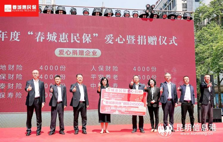 今年,在昆明市醫(yī)療保障局倡導(dǎo)下,“春城惠民保”共保體成員、7家愛(ài)心企業(yè)履行社會(huì)責(zé)任擔(dān)當(dāng),向我市困難群體獻(xiàn)愛(ài)心,捐贈(zèng)“春城惠民?!睌?shù)量28300份,總計(jì)保額566億,為困難群體筑起健康后盾。