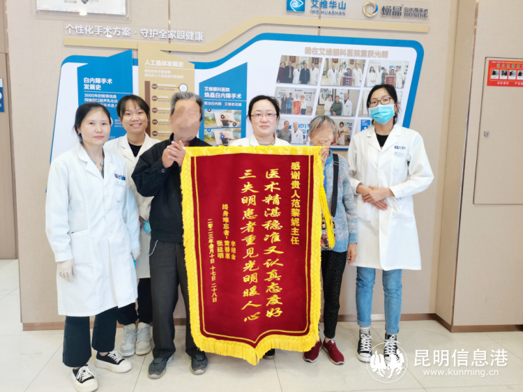 “我們太高興了,終于能看見了,太感謝范主任了。”近日,78歲的張伯伯和74歲的黃阿姨早早來到昆明艾維眼科醫(yī)院,將一面寫著“醫(yī)術精湛、穩(wěn)準認真,失明患者重現光明”的錦旗,親手送到昆明艾維眼科醫(yī)院青白科主任范黎妮手中,感謝范主任讓他們夫妻倆重新擁有清晰明亮的“視界”。