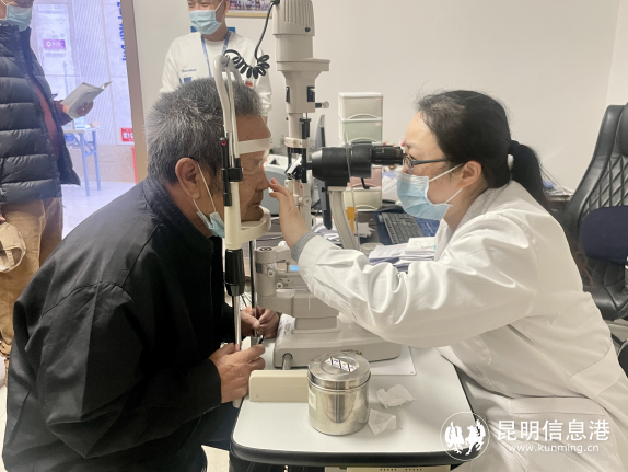 圖為昆明艾維眼科醫(yī)院青白科主任范黎妮為張伯伯看診