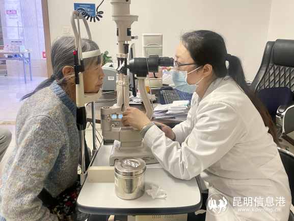 圖為昆明艾維眼科醫(yī)院青白科主任范黎妮為黃阿姨看診