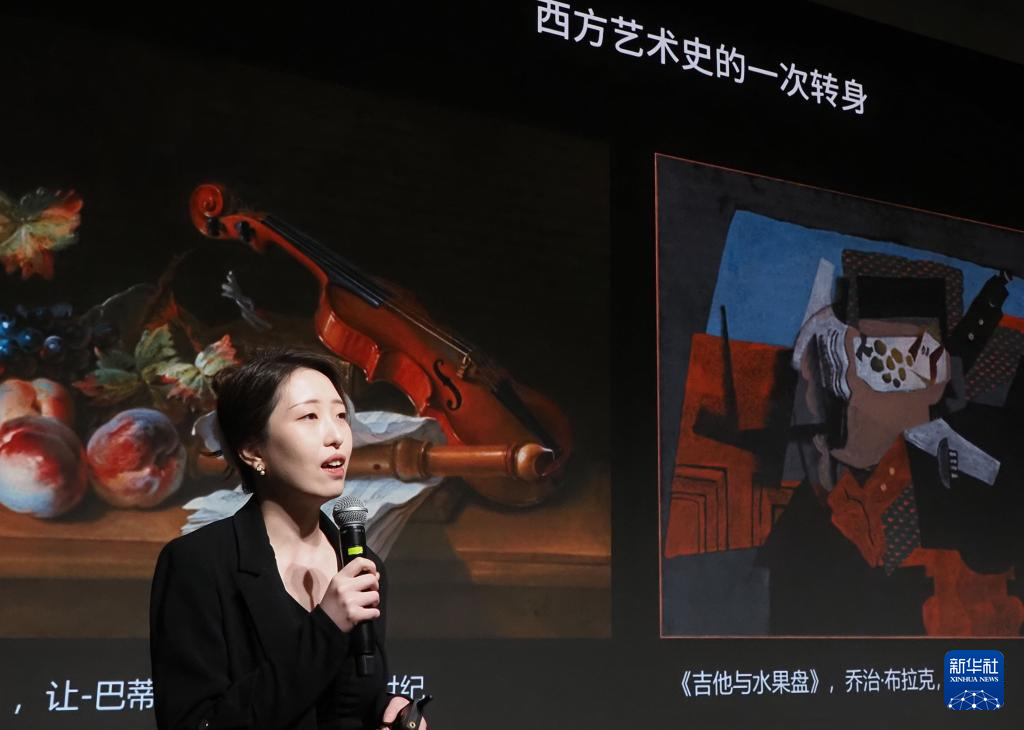 4月8日,上海西岸美術(shù)館導(dǎo)覽員康恬在徐家匯書院為市民導(dǎo)覽西方藝術(shù)展覽作品。