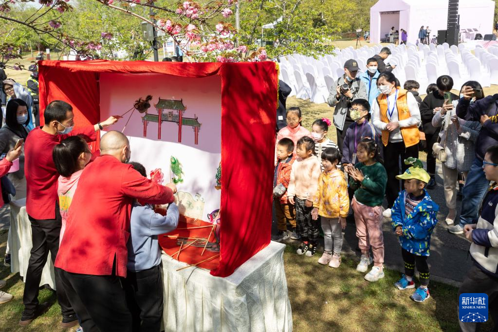 4月8日,孩子們在上海市寶山區(qū)顧村公園參加皮影戲現(xiàn)場體驗(yàn)活動。