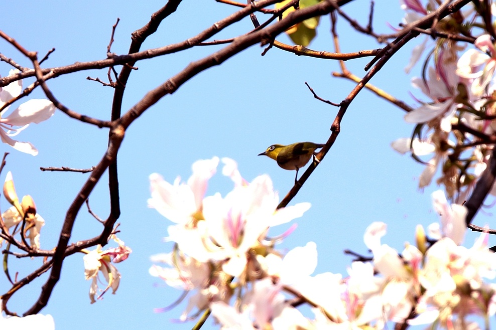 進(jìn)入四月,丘北縣普者黑國家5A級旅游景區(qū)內(nèi)的八道哨鄉(xiāng)白臉山村,山峰上一株株洋紫荊美麗綻放,遠(yuǎn)觀近看,山花爛漫、清麗脫俗,鳥兒在花叢中跳躍舞動,展現(xiàn)出一幅幅美麗的大自然圖景。(丘北縣融媒體中心 馬衛(wèi)忠)